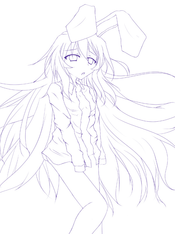 裸Yシャツなうどんげです。とりあえず線画のストック増やしてるところです…練習も兼ねて。